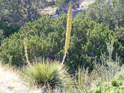 Not the best photo of the Grosbeak, and before I enlarged it I kept thinking the bird was a Bullock's Oriole. But when I saw the beak I knew right away it wasn't. I went to the Cornell bird site to listen to the Black-headed Grosbeak's song; that's when I realized what it was. Apparently, they summer (and breed) here in New Mexico.