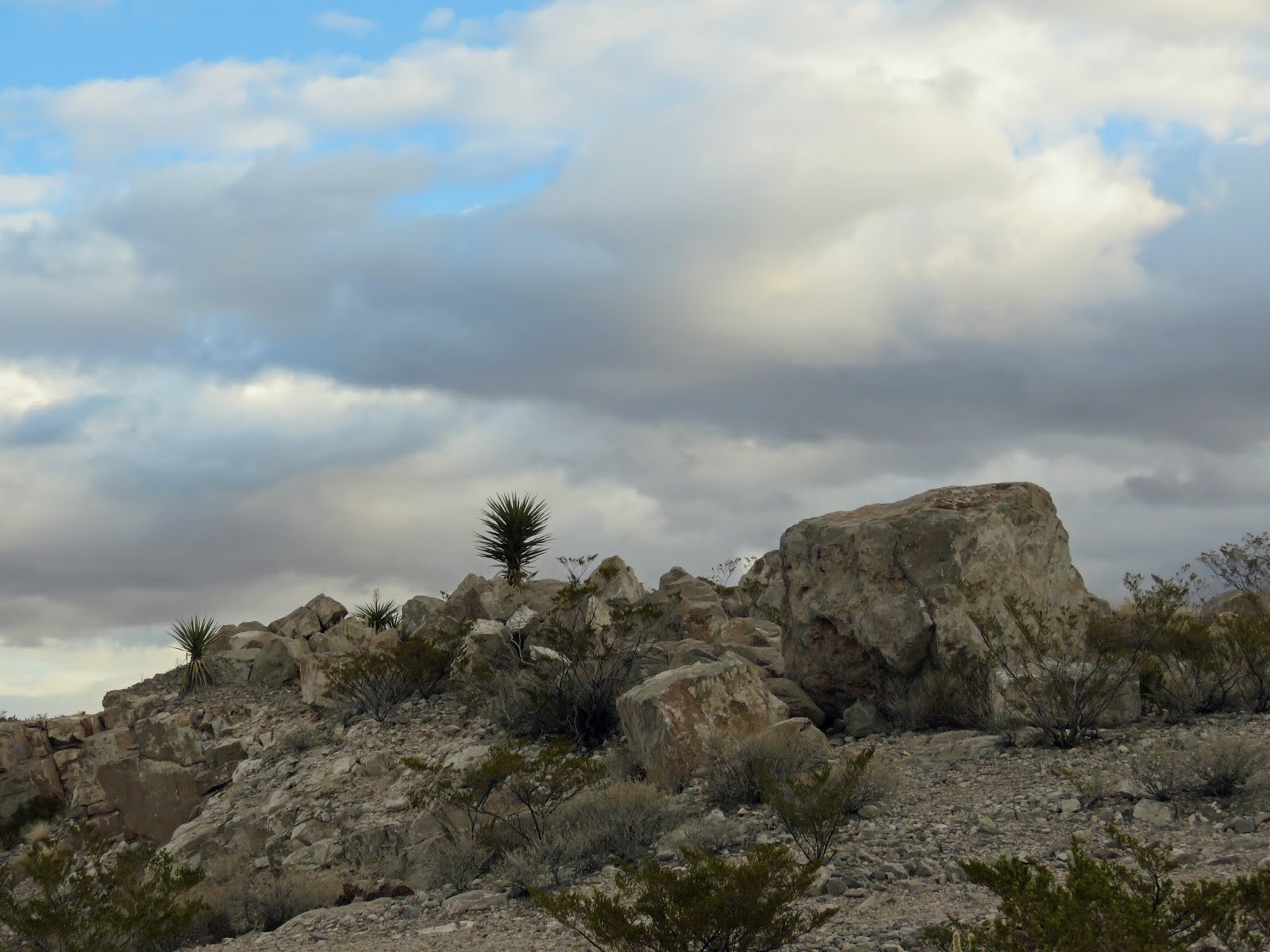 There were other intrepid outdoor enthusiasts on and about the mountain, but I had no direct encounter with any. It may have had something to do with the route I chose to follow: up the trail east of the Sunset Area parking lot past the old rock quarry to the saddle overlooking a distant view of the Organ Mountains.