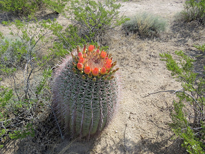 The biggest benefit from my solo trek was encountering birds, bees, butterflies, hawks and Roadrunners during the exploration. The most colorful benefit derived from discovering numerous Barrel Cacti growing alongside the arroyo banks.