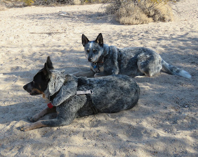 Although we had seen the man and woman with their five Basset Hounds walking alongside Tellbrook Road in the direction of the mountains as we drove to the trailhead we never saw them out in the desert. Our only encounter with a sentient being was with a Black-tailed Jackrabbit who acted as if he was tempting the dogs to chase him. I successfully kept them at bay two separate times, though they were more than ready to oblige the feisty American Desert Hare.