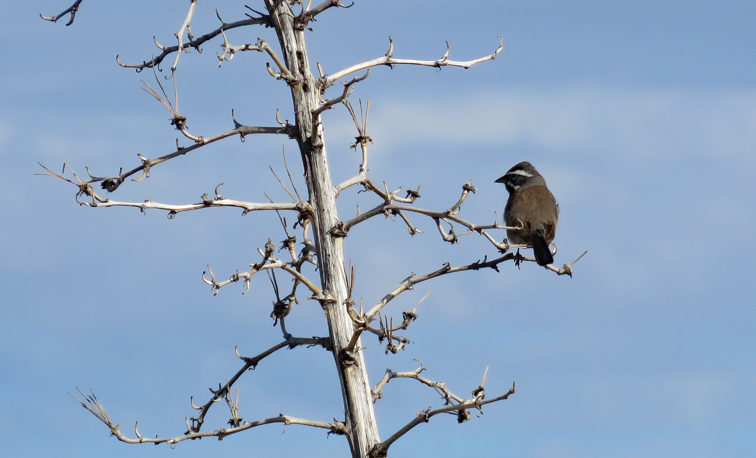 The three of us did our usual trek, seeing no human or canine nature lovers out there today. I did see a Black-throated Sparrow who kindly posed long enough for me to snap a few pics of it.