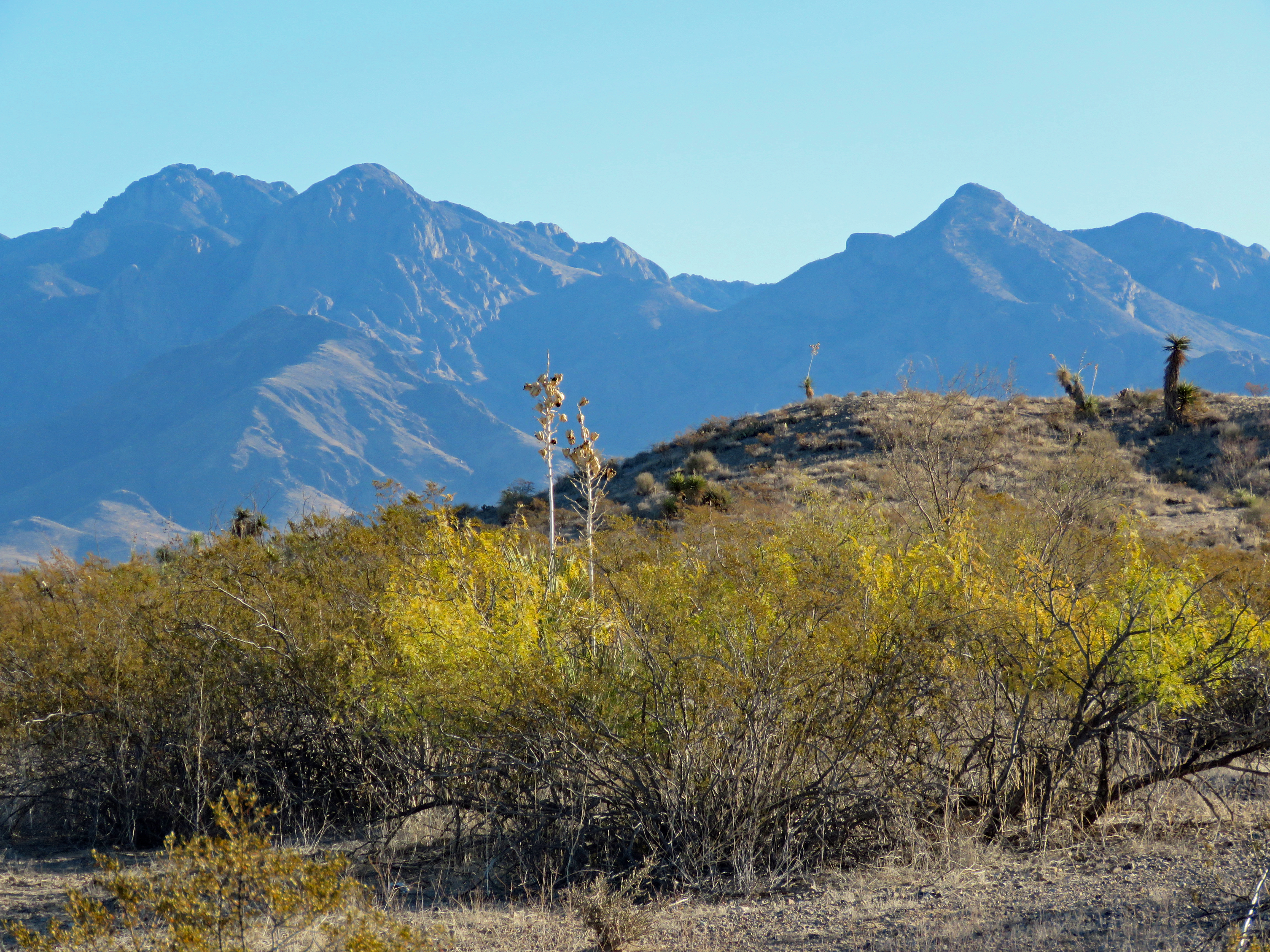 | Mesquites, yuccas and the mountains |
