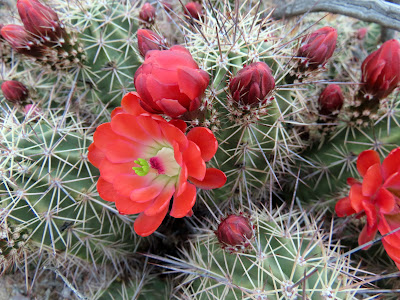 Again I was surprised that the Claret Cup was blossoming on such an overcast day, and when we got up into the right branch I was equally surprised to discover another hedgehog starting to flower. Usually the blossoms don't open unless it's sunny out.